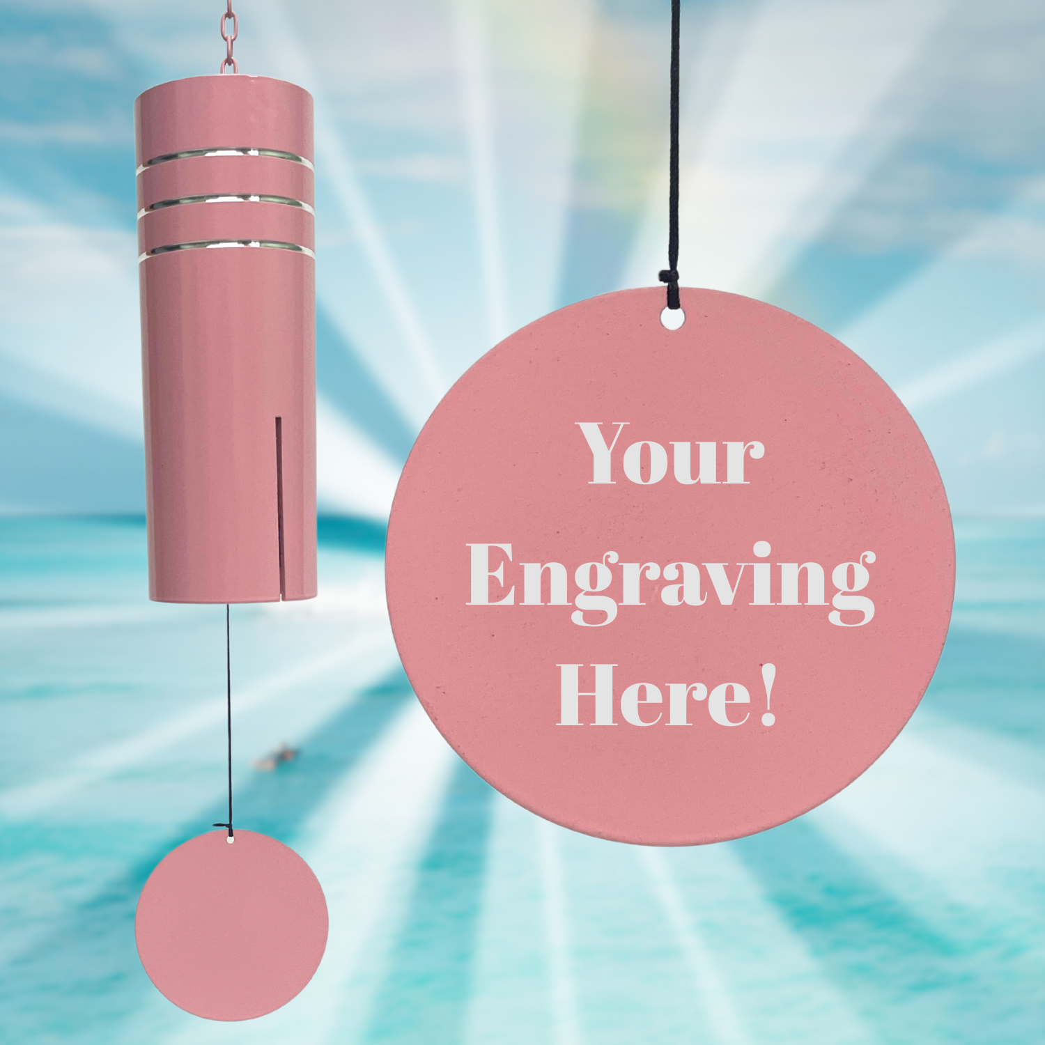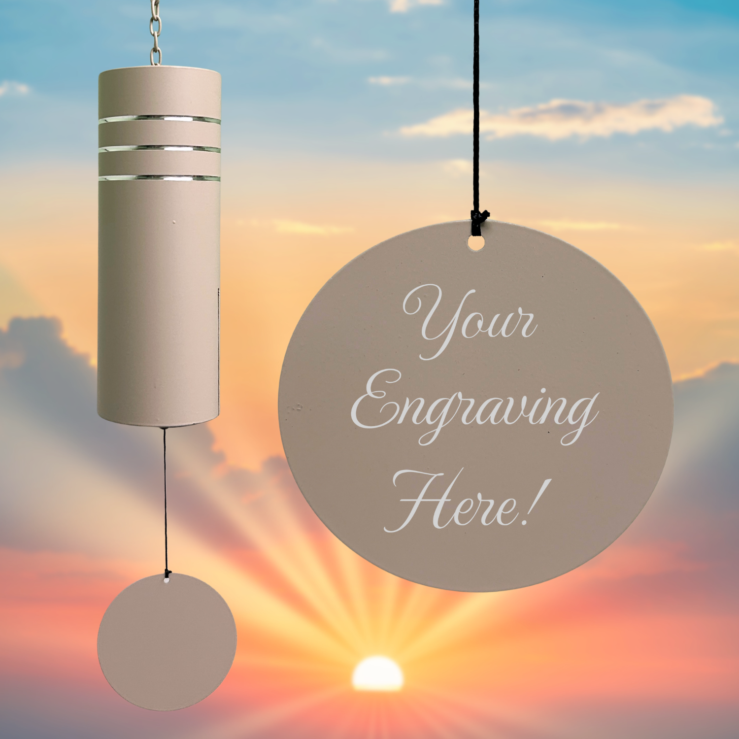 Made with aluminum construction, this chime features a durable powder-coated finish and industrial-grade cord for long-term outdoor enjoyment. The wind sail can be custom engraved on both sides with up to 50 characters of your choice, perfect for names, dates, or a special message.
