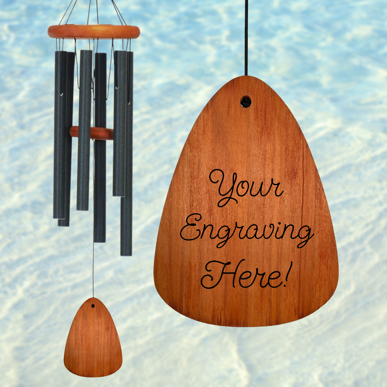 Add a touch of joyful, nature-inspired music to your space with this charming small wind chime. Its rustic design is sure to brighten your day as it sways and sings with the breeze. Featuring 24 inches in length, six anodized aluminum tubes, durable nylon cording, and a top cap, striker, and wind sail crafted from American redwood, this chime brings playful melodies to life. Add a personal touch by engraving up to 75 characters on the front side of the wind sail, perfect for names, dates, or heartfelt messages.