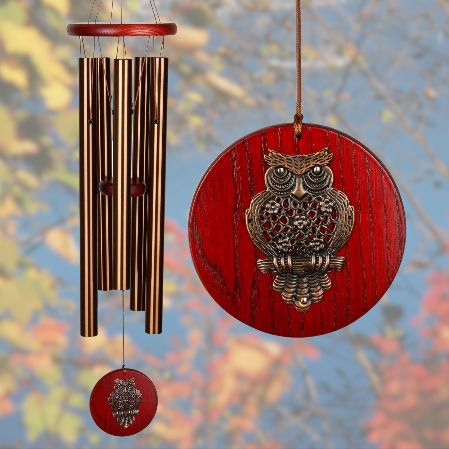 Our Habitats Bronze 26 Inch Wind Chime is tuned to the opening notes of the hymn “America the Beautiful” and crafted with five bronze-anodized aluminum tubes. The warm bronze finish pairs beautifully with the teak-finish ash-wood tier, producing a soothing, melodic sound suited for any garden, porch, or memorial.