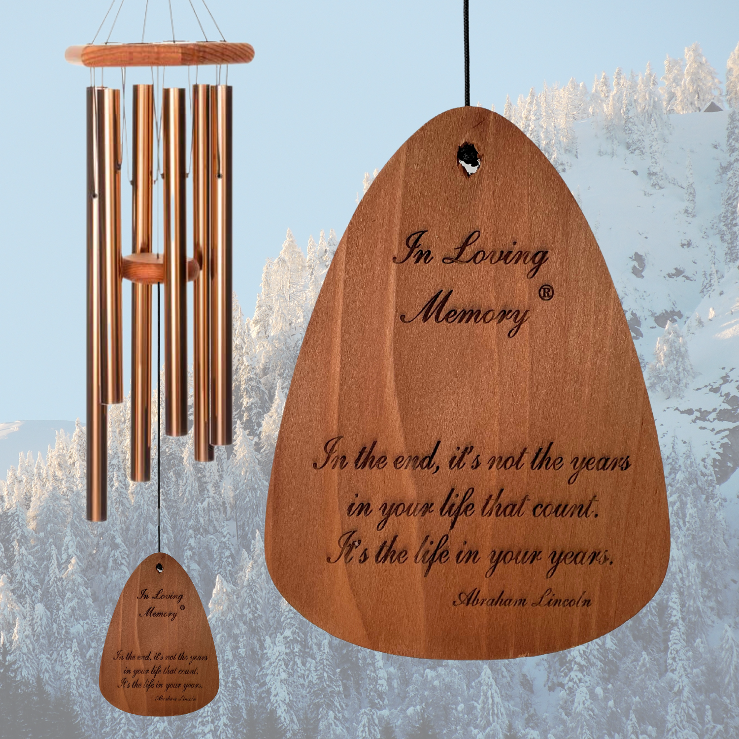 Features a pre-engraved wind sail with “In Loving Memory” and an inspirational verse, blending visual sentiment with the gentle music of the chimes.